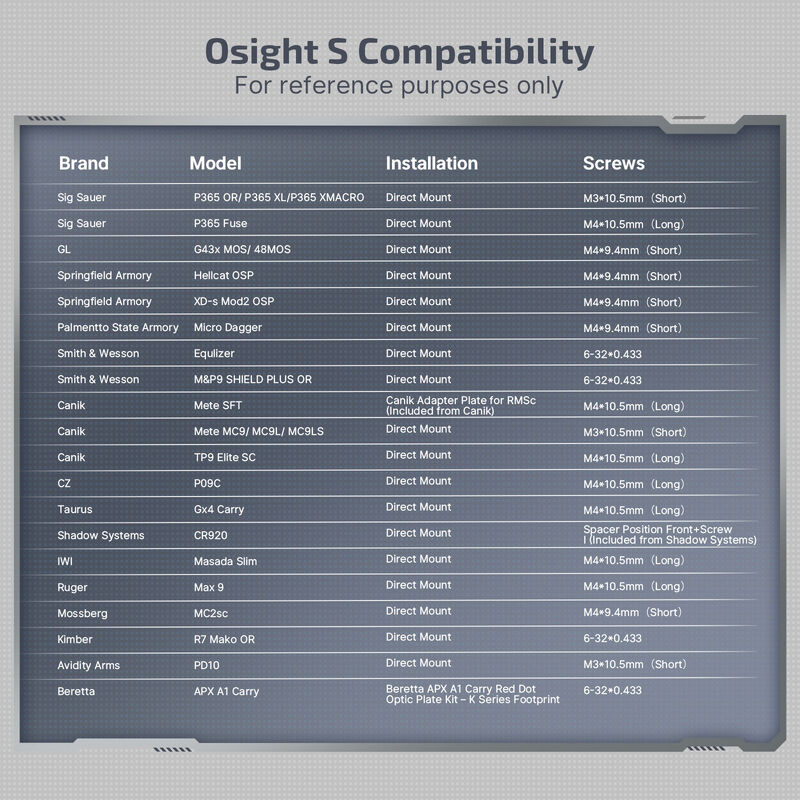 Experience unparalleled precision and rapid target acquisition with the Olight Osight S Red Dot Reflex Sight. This advanced optic is engineered for shooters who demand accuracy and reliability in any scenario. The versatile multi-reticle system allows you to effortlessly switch between a 2 MOA dot, a 32 MOA circle, or a combination of both, ensuring optimal aiming for any situation. Constructed from Olight's proprietary OAL™ aluminum alloy with a Level III anodized finish, the Osight S is both incredibly lightweight and durable, offering superior resistance to impact and corrosion. Its aspherical lens provides a crisp, distortion-free sight picture, while the large window ensures a wide field of view for enhanced situational awareness. The sight features 12 brightness settings, including 10 for daylight and 2 for night vision, which can be adjusted manually or automatically to match ambient light conditions. A standout feature is the industry-first magnetic charging cover, which not only protects the optic but also recharges the internal battery and displays the real-time power level. With a motion sensor that activates the sight upon movement and powers it down after 10 minutes of inactivity, the Osight S is always ready when you are. Its universal RMSc footprint ensures seamless compatibility with a wide range of optics-ready firearms. Elevate your shooting performance and gain a critical edge. Equip your firearm with the innovative Olight Osight S Red Dot Sight from Xhunter Australia.