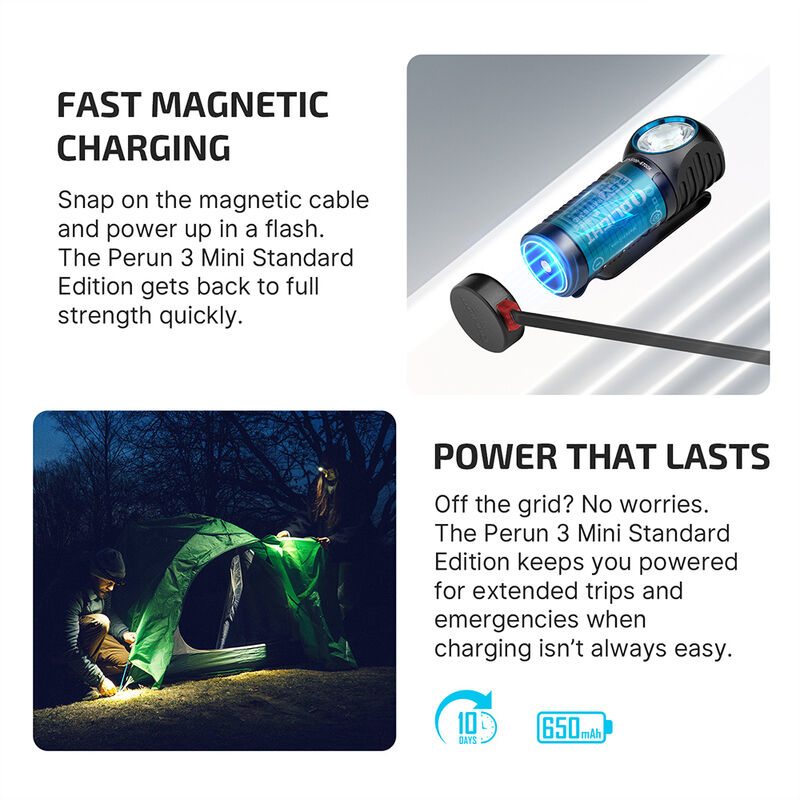 Experience exceptional versatility and power with the Olight Perun 3 Mini, a compact right-angle torch that excels as both a handheld flashlight and a high-performance headlamp. Delivering a powerful 1250-lumen beam of cool white light up to 155 meters, it's engineered for everything from professional use to demanding outdoor activities. The Perun 3 Mini features dual light sources, offering five white light brightness levels and three red light modes to preserve night vision or for emergency signaling. Its innovative design includes a magnetic tailcap for hands-free attachment to metal surfaces and a removable pocket clip. The upgraded headband is 25% lighter than previous models and features a quick-release bracket, allowing you to switch from a secure headlamp to a handheld torch in an instant. Powered by a custom 650mAh rechargeable battery, it recharges quickly via Olight's signature magnetic charging cable. With an IPX8 waterproof rating and a durable aluminum body, the Perun 3 Mini is built to withstand the toughest conditions. Illuminate your work and adventures with the adaptable and powerful Olight Perun 3 Mini from Xhunter Australia.