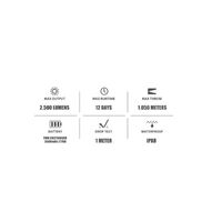 - Level 1: 2,500 ~ 1,000 ~ 600 Lumens - 5 + 180 + 27 mins