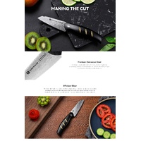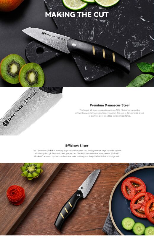 The Olight-Oremake Sheepdog 3.5-inch Paring Knife is a must-have for outdoor enthusiasts, hunters, and chefs seeking a versatile tool. Crafted with a premium Damascus steel construction, its forged 45-layer build with an AUS-10 steel core ensures exceptional strength and edge retention, making it ideal for precise cuts during hunting and outdoor cooking adventures. With 22 layers of stainless steel flanking the core, this knife offers remarkable corrosion resistance, vital for the rugged conditions of Australian hunting and shooting expeditions.