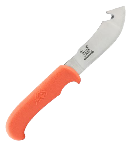 The illustrated Outdoor Edge Knife Combo is the Blaze n Bone Knife Combo that includes a Gut Hook Skinning Knife for opening game without piercing vital organs, a Fillet Knife for deboning meat and separating primary muscles, and a Tungsten Carbide Sharpener for edge touch ups. The Skinning Knife features a 4.25Inch 420 stainless steel gut hook fixed blade; full length tang construction with rubberized orange Kraton handle, 9.38 inch overall. The Fillet Knife features a 4.8 inch 420 stainless steel flexible fillet blade; full length tang construction with rubberized orange Kraton handle, 9.88inch overall. A Mossy Oak® nylon pouch that also functions as a belt scabbard is included with this Outdoor Edge Knife Combo. The Outdoor Edge Blaze n Bone Knife Combo weighs 15.3 ounces. Made in China.