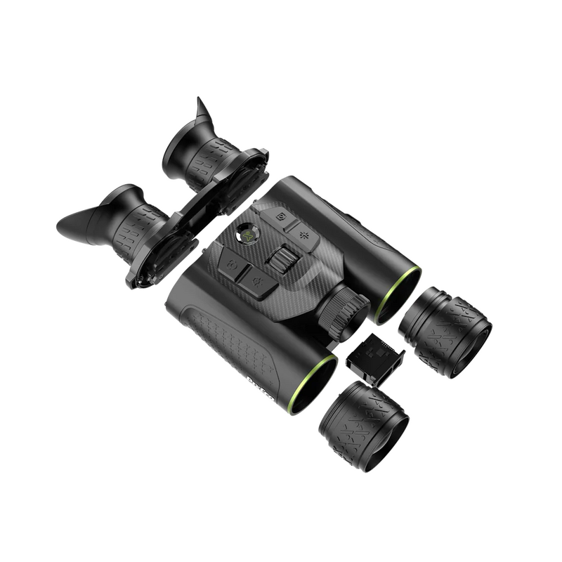 Experience a new era of observation with the Pixfra Draco PFI-D635N-4K Multispectral Binoculars, a revolutionary 4-in-1 solution for the serious outdoorsman. This device masterfully integrates high-sensitivity thermal imaging, 4K digital night vision, a precise laser rangefinder, and a powerful infrared illuminator into a single, ergonomic unit. The core of the Draco's power lies in its 640x512 thermal sensor with an exceptional <15mK NETD sensitivity. This allows it to detect the most subtle temperature differences, revealing targets with unmatched clarity at distances up to 1800 meters, even in challenging conditions like heavy rain or fog. Complementing the thermal capabilities is a state-of-the-art 3840x2160 4K UHD CMOS sensor, which delivers incredibly sharp, detailed images in both daylight and low-light scenarios. The system automatically switches between day and night modes, ensuring optimal performance as conditions change. Viewing is an immersive experience through the dual 0.49-inch Full HD OLED displays, which provide a comfortable and expansive field of view. Pixfra's PIPS 3.0 AI-driven image enhancement technology further refines every frame for superior detail and clarity. Additional features like Electronic Image Stabilization (EIS), a built-in 1000m laser rangefinder, GPS, and dual-band Wi-Fi for seamless streaming make the Draco an indispensable tool for hunting, wildlife observation, and security applications. The intuitive multi-function wheel and four-button layout ensure easy operation, even with gloves on. Dominate the darkness and gain a decisive advantage on your next hunt. Equip yourself with the Pixfra Draco PFI-D635N-4K from Xhunter Australia and see the unseen.