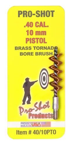 Often called "The Gunsmith's Brush," the Pro-shot 40/10PTO Tornado Brush is engineered for a superior and safe clean. Its special spiral-wound design is highly effective at removing tough fouling from your bore without causing damage. The unique brass loops on the Pro-shot Tornado brush ensure there are no sharp bristle ends that could scratch the rifling. This design allows the brush to reach all the hard-to-get spots, ensuring a thorough clean every time. Built for durability and precision, this brush is an essential tool for maintaining the accuracy and longevity of your .40 Cal and 10mm pistols. Ensure your firearm operates at its peak with the deep-cleaning action of the Pro-shot Tornado brush from Xhunter Australia.