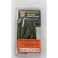 The Hoppe's 9 Boresnake takes the hassle and mess out of cleaning rifles, pistols, and shotguns. Easy to use, washable, and reusable, this Gun Cleaning Kit from Hoppe's 9 will ensure that all of your favorite firearms are kept in great condition. The Hoppe's 9 Cleaning Boresnake Bore Brush with bronze bristles is embedded in cord to loosen hard deposits. A pull or two of the Hoppe's 9 Bore Snake and you get a shiny clean bore that's ready for more action. This Hoppe's 9 Boresnake Cleaning Kit is ideal for quick cleans or for cleaning in the field. No rods, no patches, and no attachments make the Hoppe's 9 Lightweight BoreSnake one of the best boresnakes on the market.