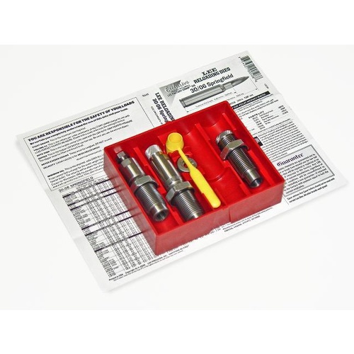 Lee Pacesetter .308 Winchester 3-Die Set 90507 is a comprehensive reloading kit that will have you churning out factory-quality ammunition with a precision you can only find otherwise in pre-packaged ammunition. The Pacesetter set of reloading tools includes all the basic gear you need for precise re-sizing, crimping, seating, and filling. These Lee reloading kits feature three professional-grade dies: a full-length sizing die, a bullet seating die, and a factory crimp die. The Lee Precision Pacesetter .308 Winchester Three Die Reloading Kit also includes some non-die accessories that will help you load and hold your ammunition, including a roll crimper, a universal shell holder, a powder dipper, and a instruction manual that also contains precise load data for .308 Winchester ammunition. Lee Precision has housed all these components in a compartmentalized, easy to store carrying case with a transparent lid, so you can keep all your tools organized and easy to access from your work bench. For a comprehensive set of reloading tools at a great value price, purchase the Lee Pace Setter Three Die Reloading Pack for .308 Winchester.