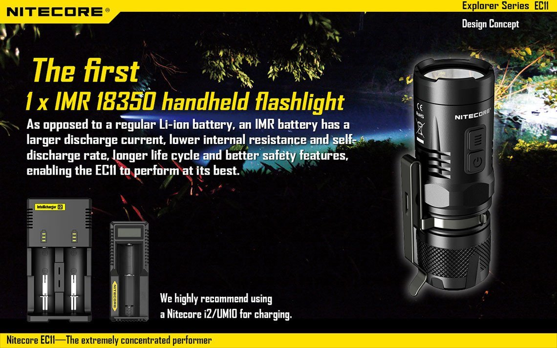 The tiny EC11 can use an IMR 18350 battery to produce an amazing 900 lumens for such a small torch. It can also use a standard CR123A battery with a maximum 430 lumens. The dual switch interface and secondary red LED provide easy use and battery voltage indication. Smallest 900 lumen torch yet!
