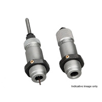 This two-die set is intended for reloading bottleneck cases, and consists of a Full-Length Sizer Die with an Expander-Decapping Unit, and a Seater Die with Bullet Seater Plug. The Full-Length Sizer Die brings the case to SAAMI minimum cartridge dimensions. It sizes the outside of the case, de-primes and expands the neck to accept the bullet. The die has vents to prevent case damage caused by trapped air and for excessive lubricant. Headspace is held to minimum tolerances to avoid changing the case body length during full length sizing.