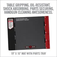 The Handgun Smart Mat offers you a cleaning surface that is large enough to handle a fully disassembled handgun. An oil-resistant surface keeps countertops and kitchen tables protected from chemicals and CLP. The attached parts tray ensures your pins, bolts and springs are never lost again. Give your handgun the respect that it deserves.