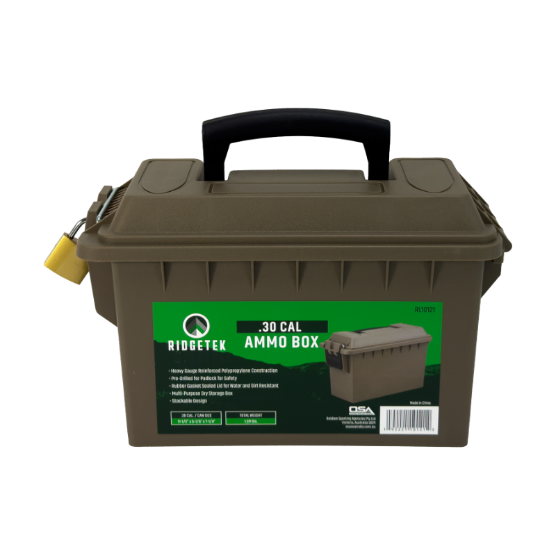 Ensure your ammunition is protected, dry, and secure with the Ridgetek RL10121 .30 Cal Ammo Box. Constructed from heavy-gauge, reinforced polypropylene, this rugged storage box is built to withstand tough conditions while being dent-proof and rustproof. It features a rubber gasket sealed lid, providing excellent water and dirt resistance to keep the contents safe from the elements. For enhanced security, the box is pre-drilled for a padlock, and the stackable design allows for efficient and organized storage in your gun safe, garage, or shed. Keep your ammunition safe, dry, and organized with this reliable storage solution from Xhunter Australia.