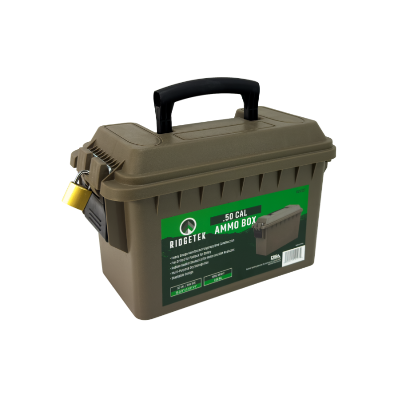 Protect your ammunition from the elements with the Ridgetek RL10127 .50 Cal Ammo Box. Constructed from heavy-gauge, reinforced polypropylene, this durable storage box is built to withstand tough conditions. A rubber gasket seals the lid, providing essential resistance against water and dirt to keep your contents dry and secure. The stackable design allows for convenient and organized storage in your gun safe or workshop, while the pre-drilled hole for the included padlock ensures your ammunition remains safe. This multi-purpose dry box is the ideal solution for storing bulk ammo, shooting gear, or any other sensitive equipment. Secure your investment and keep your ammunition in prime condition. Organize your gear efficiently with this rugged and reliable ammo can from Xhunter Australia.