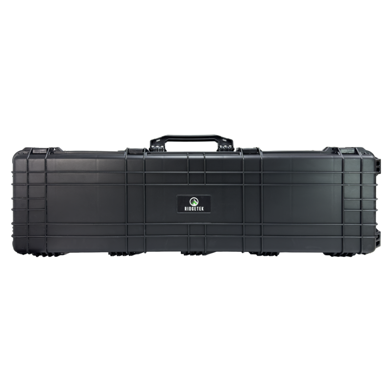 Transport your firearms with confidence in the Ridgetek RL10191 Rolling Double Rifle Case. Engineered from a reinforced polypropylene design, this case delivers exceptional durability and crush resistance for ultimate protection. The spacious interior is designed to hold two rifles with optics and accessories, secured by a fully customizable pick-and-pull foam insert that provides impact-absorbing protection. Built for the toughest environments, this case boasts an IP65 rating, ensuring it is both watertight and dustproof. Maneuverability is effortless thanks to the built-in wheels and crushproof handles, allowing for smooth transport across various terrains. For enhanced security, the case is pre-drilled for two padlocks and includes an adjustable pressure relief valve which equalizes pressure for easy opening. Secure your valuable firearms with the robust and reliable transport solution from Ridgetek. Protect your investment and travel with peace of mind by choosing the Ridgetek RL10191 for your firearm transport needs.