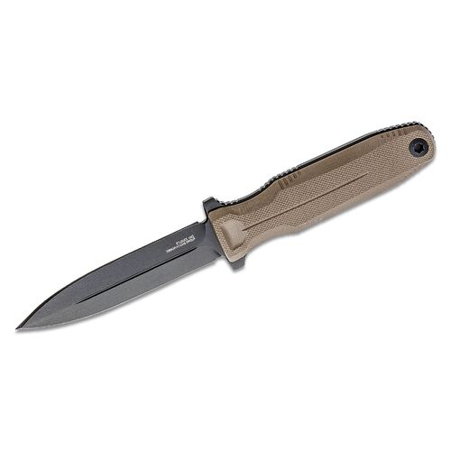 Representing an evolutionary step in hard-use fixed blade knives, Pentagon FX is a full-sized knife made for the modern-day warfighter. It features a double-edge CYRO S35VN full-tang steel blade, removable G10 handles and a GRN sheath compatible with SOG's next-generation Universal Mounting System. It's fully customizable to meet the demands of various missions, and purposefully designed to exceed expectations.