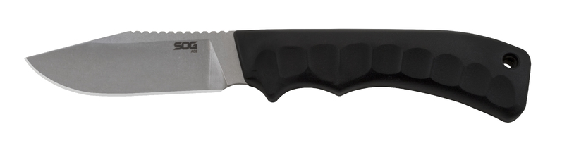 The Ace is SOG's most accessible and affordable knife. With a black sheath and a grippy textured rubber handle, this is the knife you can grab and know you'll be prepared. Featuring a 3.8-inch clip point blade for versatility, the Ace is your best friend when it comes to the outdoors. The sheath even comes with the Groove for cord cutting!