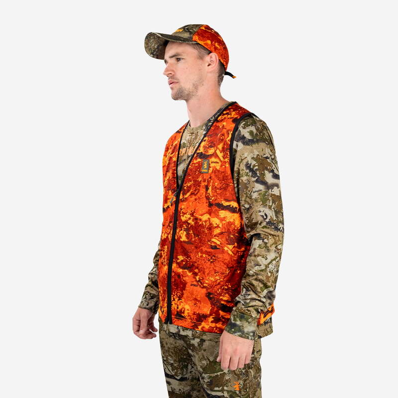 The Spika Ranger Vest in Biarri Blaze Camo is a must-have for any hunting trip. Designed to pack down into your bag but most importantly for throwing it over the top of your gear for high visibility and safety when out on a hunt. The zippered front makes it easy to whack on and the lightweight, breathable material ensures you stay comfortable all day long. The Biarri Blaze Camo pattern is visible to the human eye but for deer it is indistinguishable from our normal camouflage pattern. Whether you’re an experienced hunter or a beginner, the Spika Ranger Vest will convert any hunting garment into a safer one.