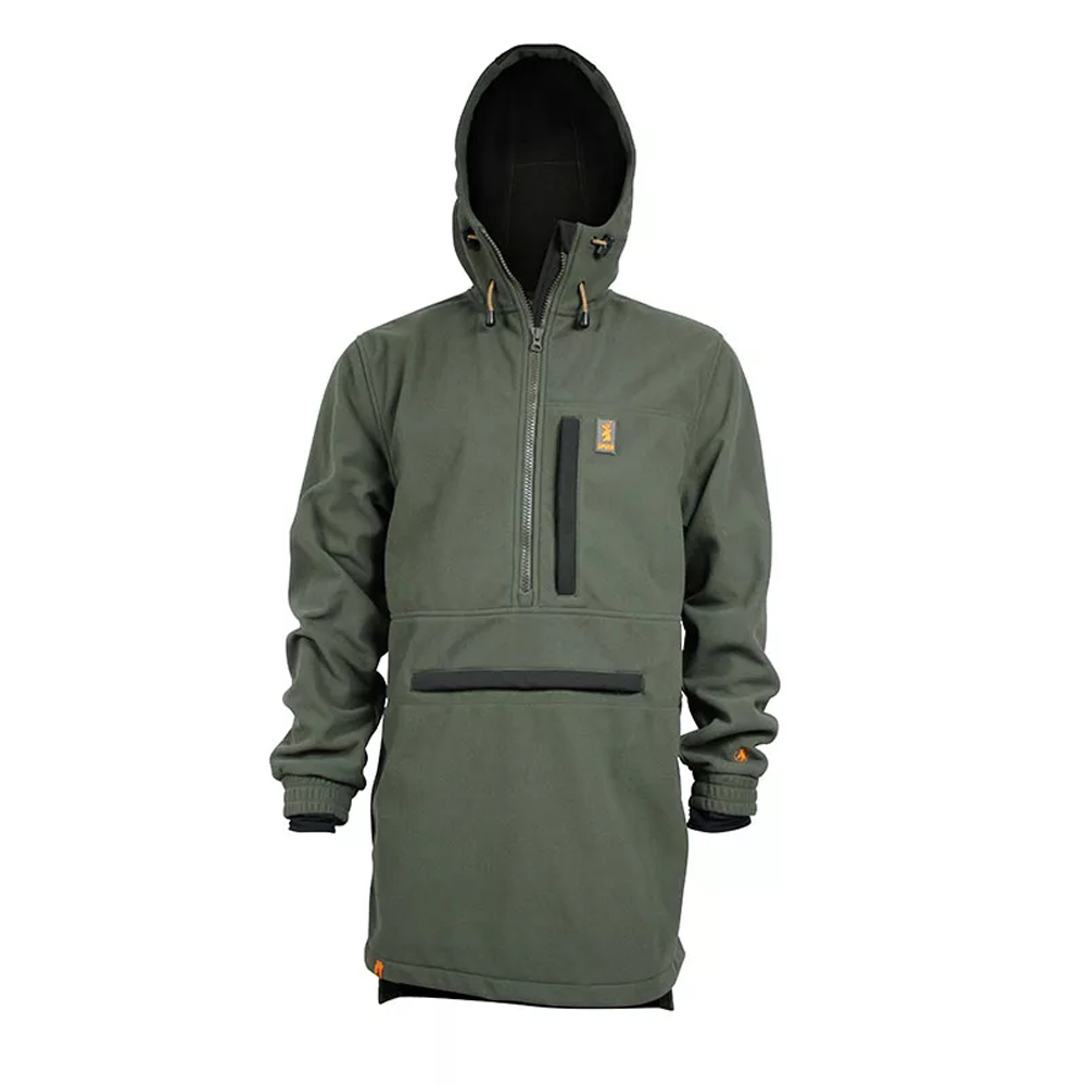 The Elite Anorak is a 330gsm wind blocking pullover that will keep you sheltered and warm while hunting. Its unique fabric insulates heat but still remains breathable making it a versatile hunting garment in the thick of winter. It has plenty of room for all your gear with side, front, chest and arm pockets.