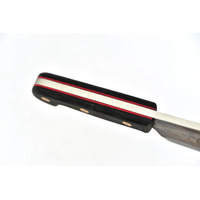 The 6" Meat Cleaver is part of Svord's Pro-Chefs line, aimed to bring quality tools to market for the professional level chef. They are Svord's traditional style kitchen knives with black acrylic and brass or Micarta handles and (generally) thicker blade stock for more stringent cutting tasks. This born and bred chopper is made with 0.275" thick 8670 high carbon steel and durable black Micarta handle scales. It's one of those cleavers where the weight does all the work, all you need to do is line up the shot. The Professional Meat Cleaver includes a black leather sheath and was proudly made in New Zealand.