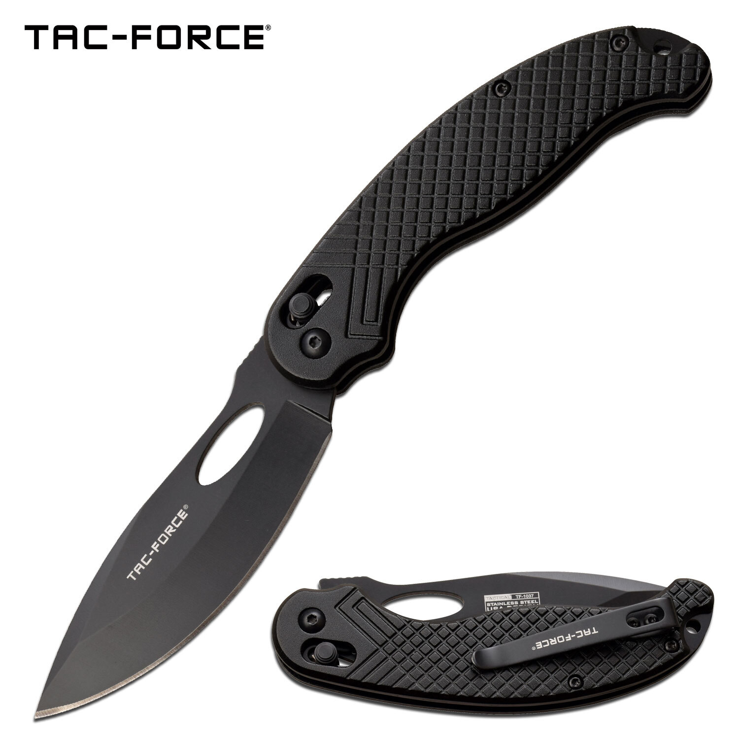 Tac Force manual folding knife with rapid blade lock. The pocket knife is 8.5 inches long open length. The blade is constructed from 3cr13 steel. 4.75 inch anodized aluminum handle. Comes with a pocket clip attached.