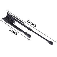 • Easy to adjust the length of the bipod --Slightly pressing the leg release button, you can extend and lock the bipod legs easily and smoothly. 5 settings of the leg length --The bipod legs have 5 notches.  It could be adjusted from 9 inches to 13 inches precisely to meet your need. Lightweight, easy to carry --Super lightweight under 0.78lb, which makes it easy to carry and suitable for hunting and range.