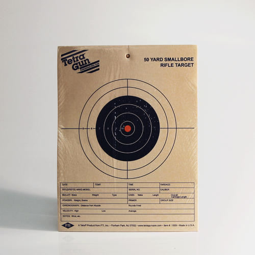 - Tetra® Gun Targets are official in all dimensions, but intended for practice use only. Targets include 50-foot to 100-yard slow or rapid fire competition targets, 50- to 100-yard small bore rifle targets, 50-foot international targets and a 100-yard precision sighting target. Targets come shrink-wrapped in bulk quantities.