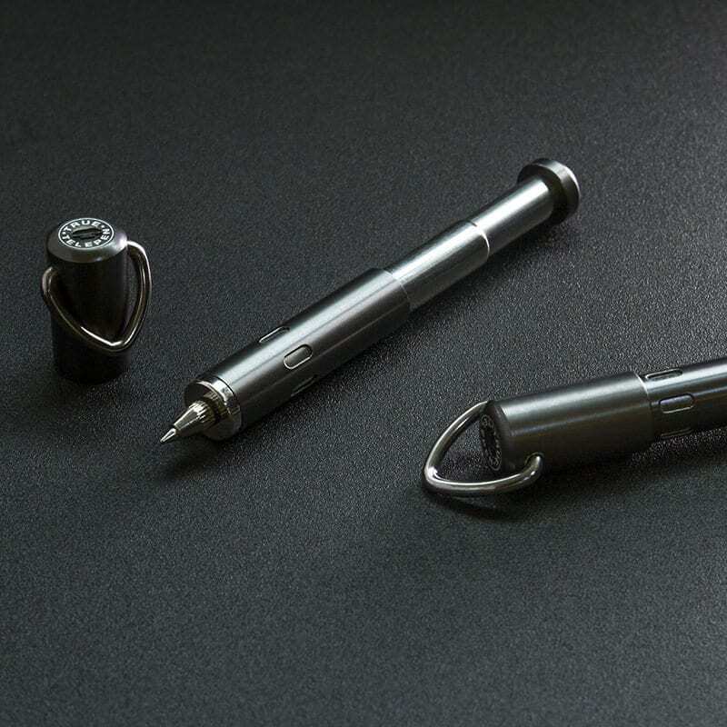 This tiny telescopic pen extends from pocket size to full length, and when open it has the width and comfort of a normal size pen! Unfasten the ballpoint pen from its powerful magnetic cap to be instantly ready for use at work, home, or for on the go writing and note taking. Engineered from anodised aircraft grade aluminium and brushed stainless steel telescopic tubing, the small, reliable telescopic keyring pen has laser cut grip detail in the body and comes supplied with 3 black ink refills.