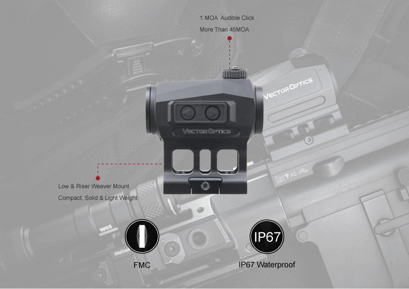 • Multi Reticle, 1MOA Adjustment with Audible Click, More Than 45MOA Adjustment Range