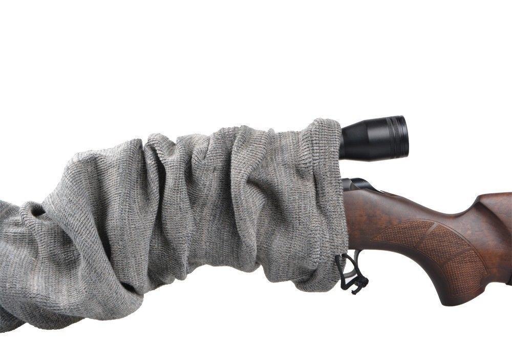 The gun socks can accommodate virtually any gun - scoped or unscoped. The stretches and is ideal for use with scopes. Features drawstring closure.