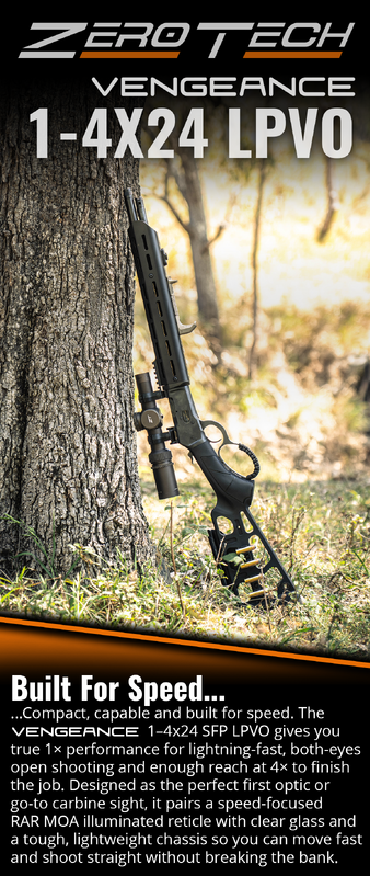 The ZEROTECH VENGEANCE 1-4×24 LPVO is a versatile rifle scope built for Australian shooters who demand speed and precision. Featuring a RAR MOA illuminated reticle, it ensures lightning-fast target acquisition with true 1x performance for both-eyes open shooting, and extends up to 4x for added reach. Crafted from 6061-T6 aircraft-grade aluminium, this scope is rugged enough to withstand the harshest conditions while remaining lightweight and affordable.