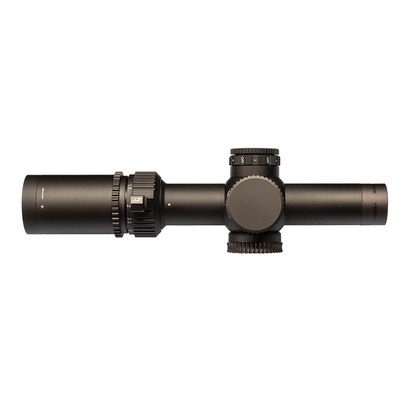 The VENGEANCE's fully multi-coated lenses offer crisp low-light contrast, making it essential in your shooting accessories kit. Its locking dioptre holds your sight picture steady, ensuring reliability when it matters most. With heavy outer bars, an illuminated circle and dot, plus 2-MOA hash marks and 4-MOA holdover intervals, this scope streamlines quick ranging and follow-up shots.