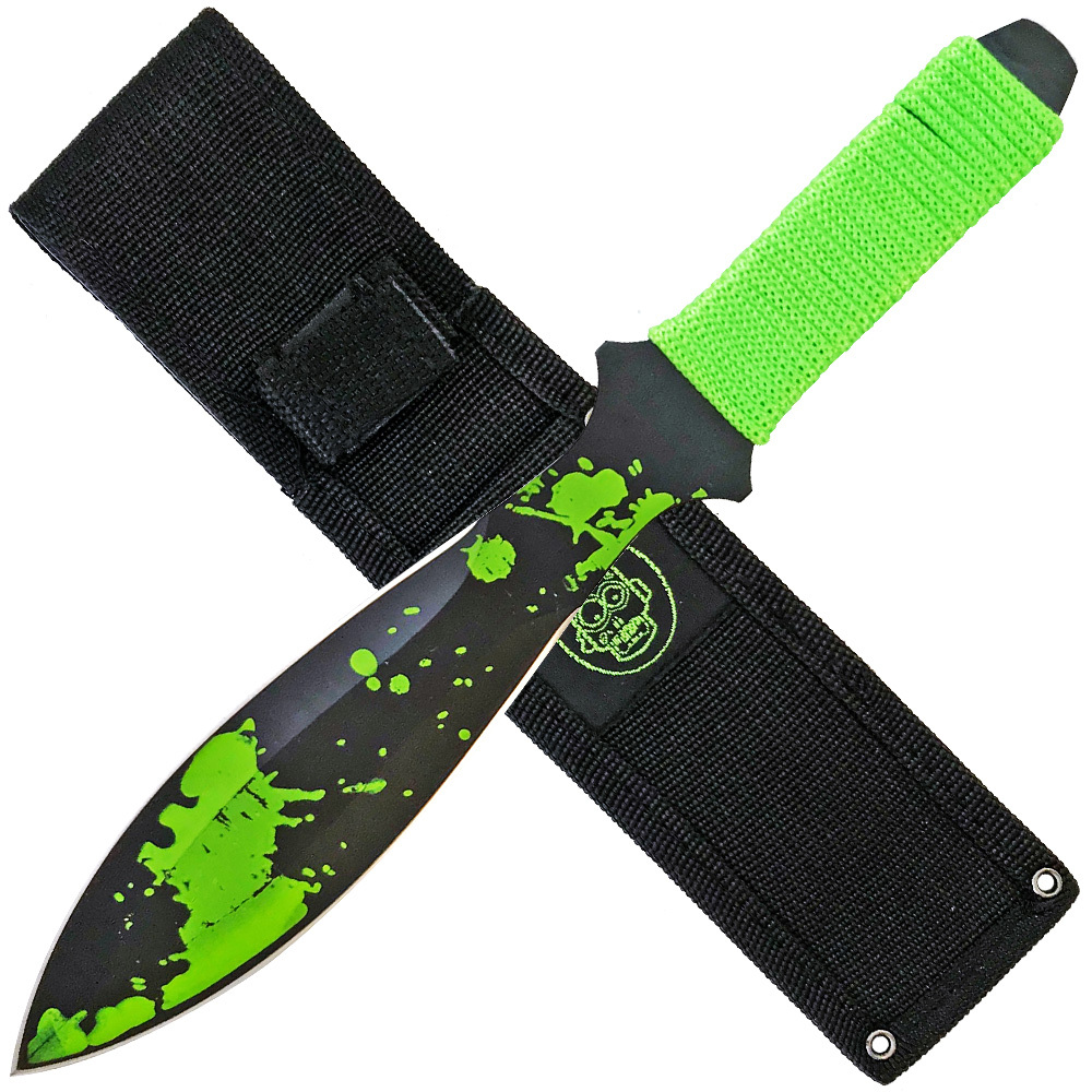 Zombie Nick Thrower Knife comes with a green cord wrapped handle for better grip and a green splattered paint blade design.